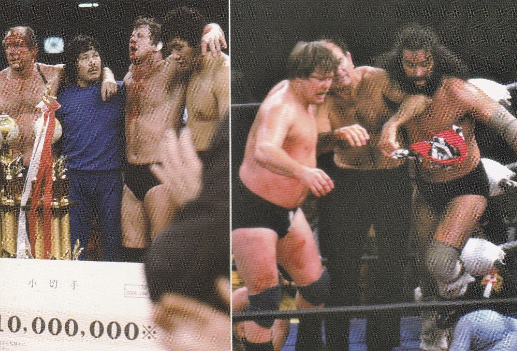 試合はファンクスでさえも超獣コンビの前になすすべもなく圧倒され、テリーが前年度同様場外でハンセンのラリアットでKOされると、ブロディがドリーを羽交い絞めにしてハンセンがラリアットを狙ったが、二人掛りの攻撃を制止するために入ったジョー樋口レフェリーを巻き込んでKOしてしまう。そこでレフェリーと鶴田のバックドロップの指南役としてシリーズに帯同していたルー・テーズがサブレフェリーに入ると、超獣コンビはうっかり大先輩であるテーズにも手を出したため、怒ったテーズが超獣コンビの反則負けを宣告、ファンクスが逆転優勝となるも、超獣コンビにボロボロにされたファンクスはまるで優勝したにもかかわらず、まるで敗者のようだった。