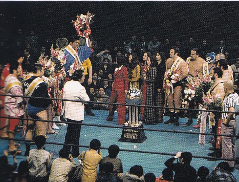 <1974年度の出場選手>馬場、ジャンボ鶴田、杉山、クツワダ、高千穂、駒、鈴木、デストロイヤー、ルーイン、ミスター・レスリング、アブドーラ・ザ・ブッチャー、イヤウケヤ、ルーファス・ジョーンズ、ジョー・ソト、セーラー・ホワイト