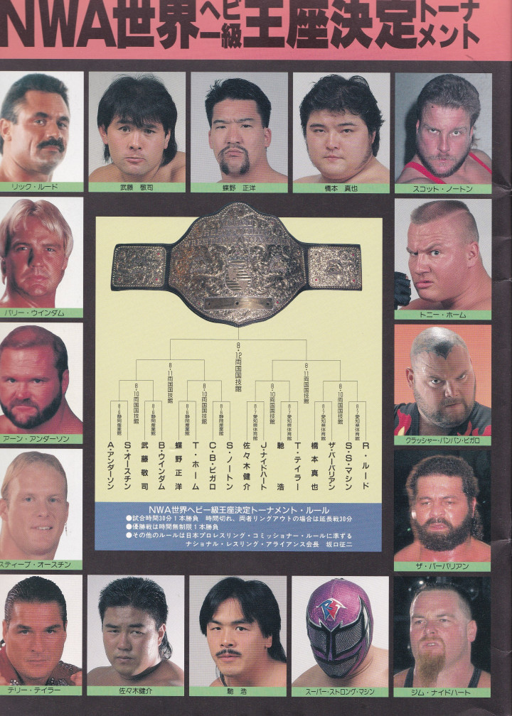 蝶野正洋、リック・ルード、アーン・アンダーソン、スティーブ・オースチン、武藤敬司、バリー・ウインダム、トニー・ホーム、クラッシャー・バンバン・ビガロ、スコット・ノートン、佐々木健介、ジム・ナイドハート、馳浩、テリー・テイラー、橋本真也、ザ・バーバリアン、スーパー・ストロング・マシン