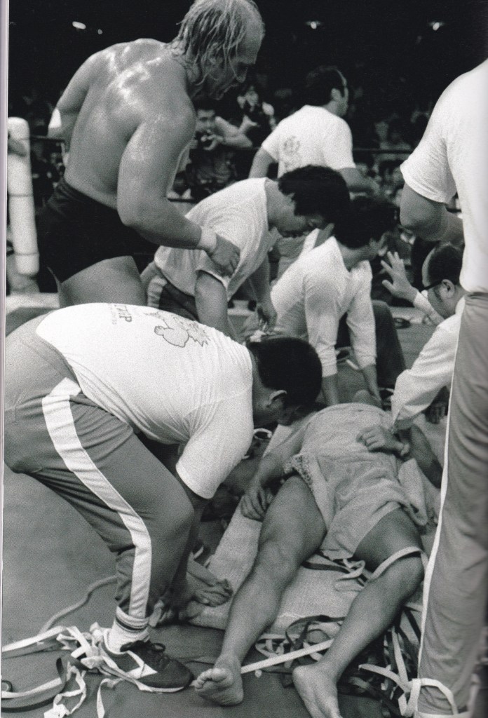 猪木のKO劇は”演技”なのではという話も出たが、試合内容を見た限りではホーガンのバックドロップを受けたことで頭部にダメージを負い、意識が飛んでいたことは間違いないと思う。猪木が負けを”選んだ”理由は、上り調子のホーガンに対し、レスラーとしてピークを過ぎ、下り坂に差し掛かっていただけでなく、リング内外の問題も重なってコンディションは最悪、その状態でホーガンに勝ったとしてもインパクトは薄い、だから敢えて大負けしてインパクトを与えることでIWGPの名称も高まり、体調を整えてからホーガンにリベンジすれば大きなインパクトを残せるではと考えたのではないだろうか…、しかしそれが最大の誤算であることは、猪木自身も気づいていなかった。