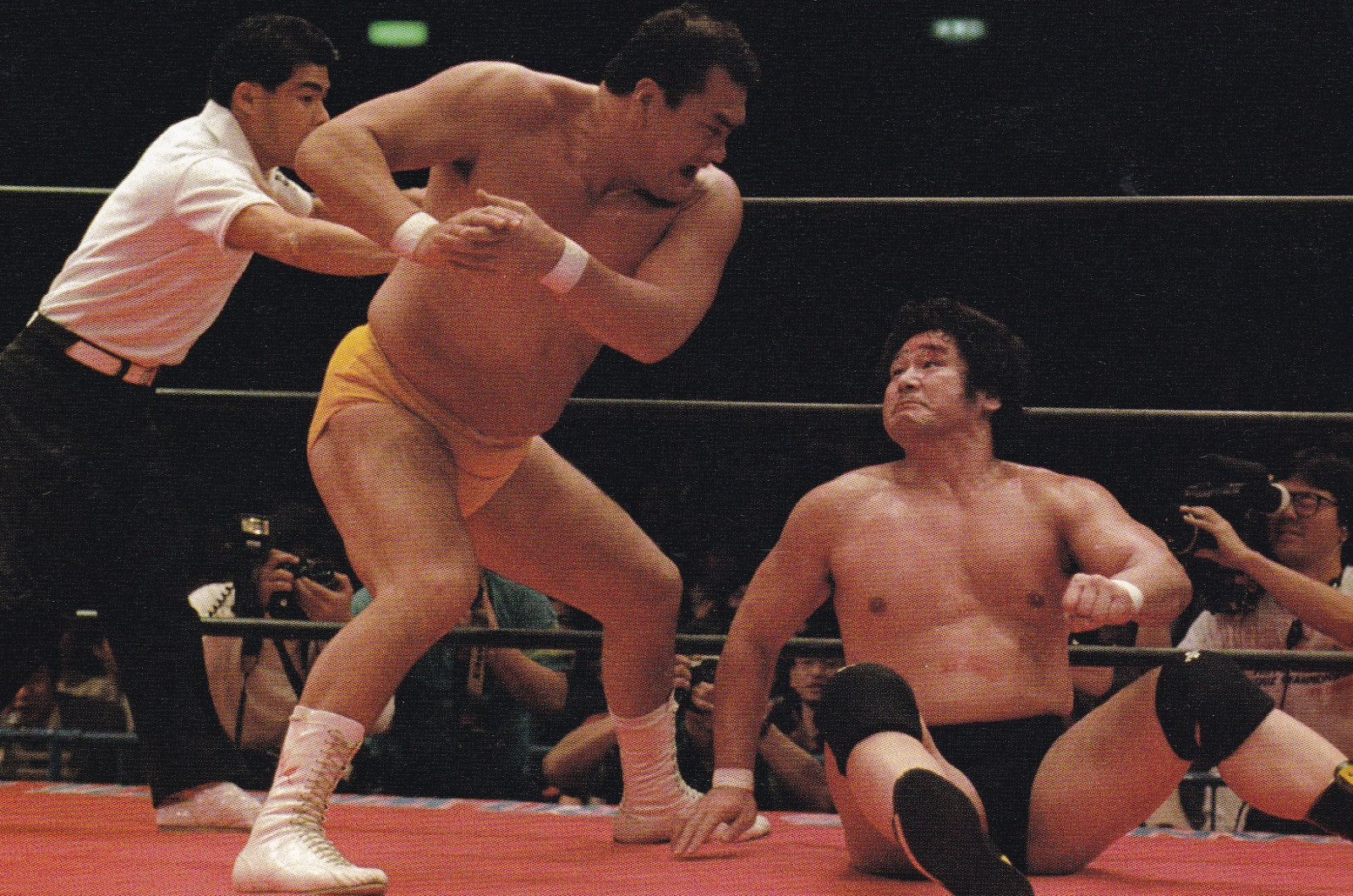 首投げで反撃したシンは首四の字で捕獲、だが逃れた輪島もスピニングトーホールドで応戦、シンがロープに逃れても構わずストンピングを浴びせるが、突進したところでシンが凶器攻撃、輪島の勢いは止まらず電車道からぶちかまし、だが串刺しショルダータックルを狙ったところで、凶器攻撃を狙うシンをチェックするジョー樋口を巻き込んでKOしてしまうと レフェリー不在で無法地帯となった試合は場外戦へと突入したが、試合終了のゴングが鳴らされ、裁定は輪島の反則負けで凱旋マッチは勝利は収められなかったが、輪島は馬場の指示でシンにガンガン向かっていった。一旦リングに戻った輪島は天龍源一郎と共にファンの声援に応えるも、バックステージに戻っていったシンに対して挑発すると、馬場の「行け!」の指示でシンの控室へ殴り込みをかけるなど、試合には負けたがやる気を充分にアピールした。