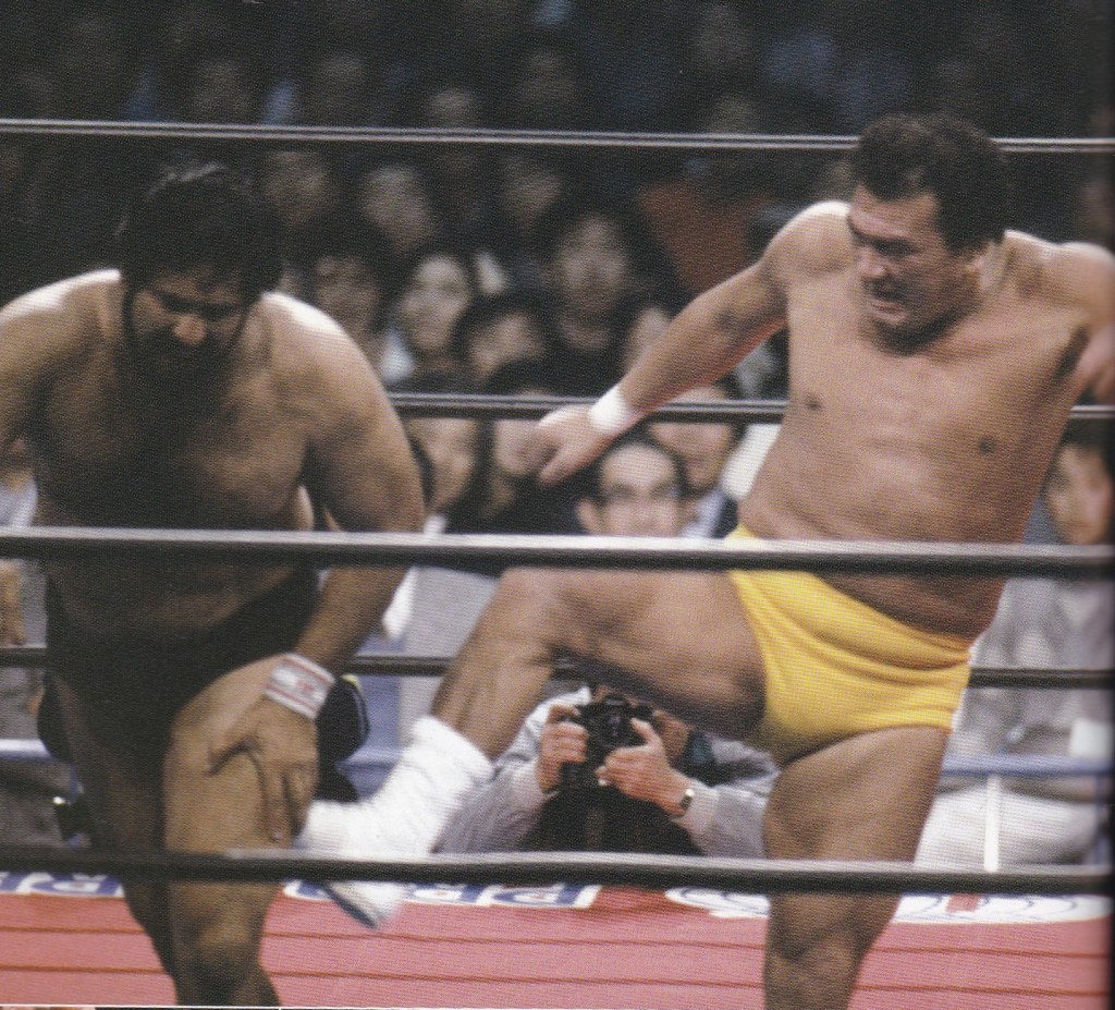 輪島の凱旋マッチの相手となったタイガー・ジェット・シン、アントニオ猪木との抗争で新日本でトップ選手となったシンだったが、全日本に移籍してからは後でスタン・ハンセンが引き抜かれたこともあって、次第に脇に追いやられ、上田馬之助とのコンビを解消してからはラッシャー木村率いる国際血盟団と共闘するも、長州力が全日本に参戦するだけでなくレスラーとしてもピークが過ぎてしまったこともあって、影の薄い存在となっていた。