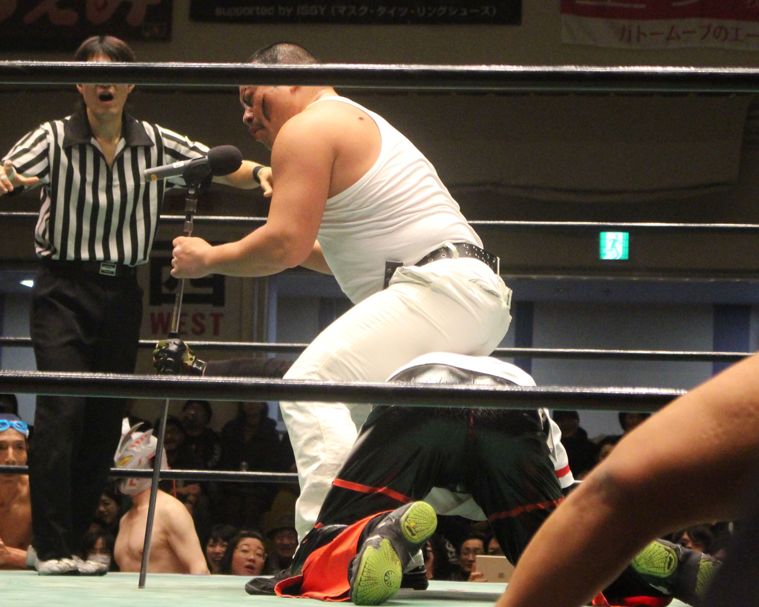 これは奇怪な出来事だった、有給が溜まっているということで、たまにはプロレスのことを忘れて旅行に出ようと思いつき、連休の前日に有給を取り、1泊2日で旅行に出ることにした。自分は電車に乗って萎びた温泉宿に向かっていた・・・はずだった。しかし気がつけば後楽園ホールにたどり着いており、みちのくプロレスのリングがある。”これは一体何が起こったんだ!?”と戸惑いつつ、観戦することにした。