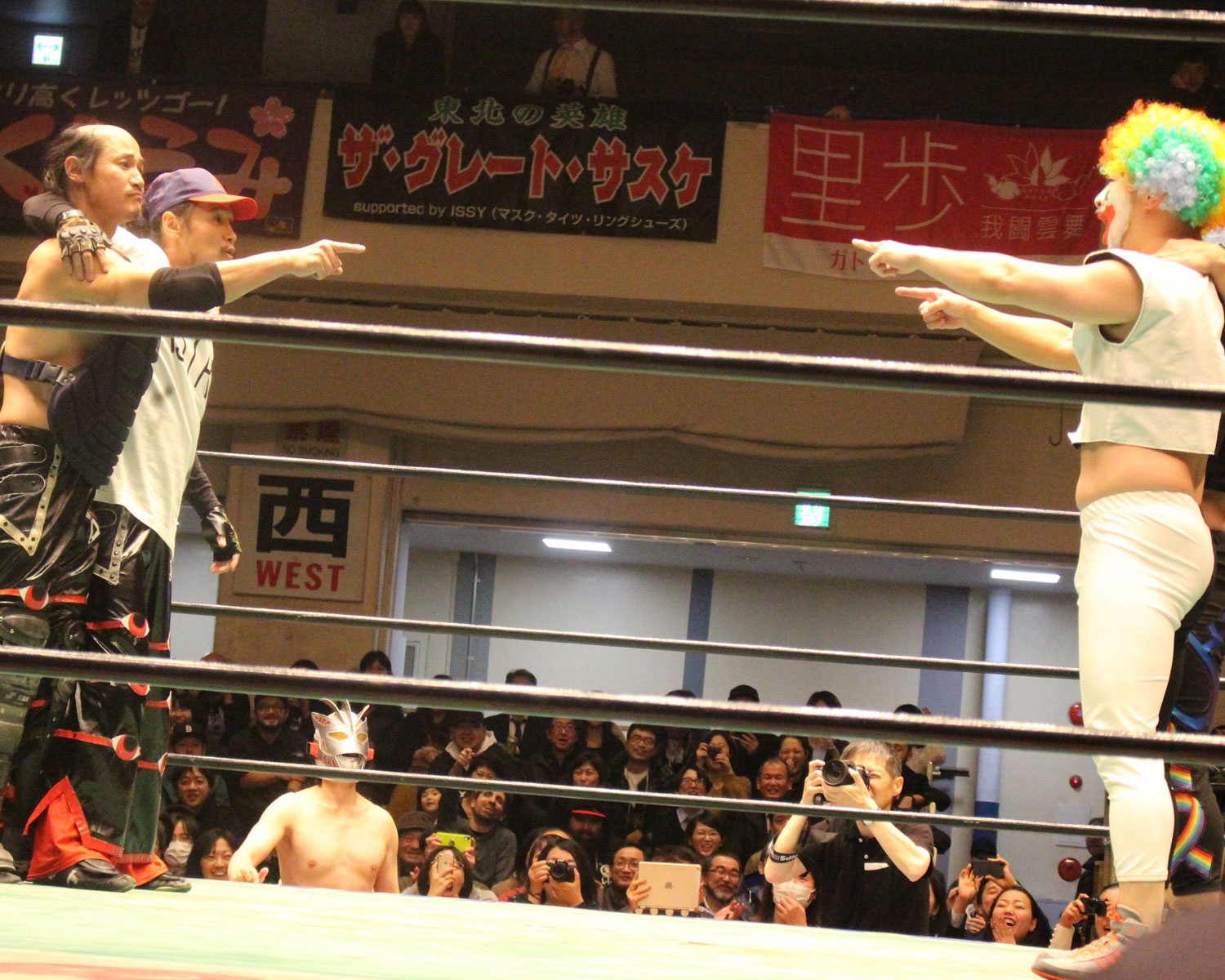 卍丸 Ken45° ○拳剛(12分9秒 片エビ固め)ウルティモ・ドラゴン ディック東郷 ×気仙沼二郎