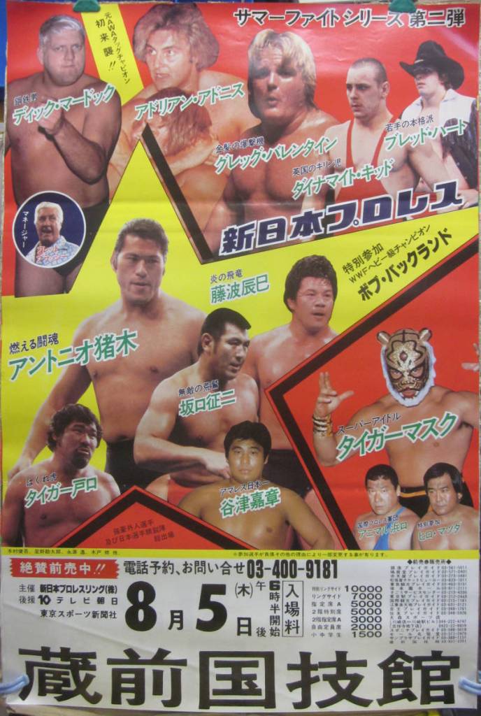 1982年7月16日、新日本プロレスの「82サマーファイトシリーズ」が福岡中間体育文化センターから開幕、シリーズにはディック・マードック、アドリアン・アドニス、グレック・バレンタインを筆頭に、初代タイガーマスクへの刺客としてダイナマイト・キッドがブレット・ハートを伴い参戦。後に”ヒットマン”としてWWEで大スターとなるブレットだったが、この時点ではまだキッドの子分的な扱いに過ぎなかった。