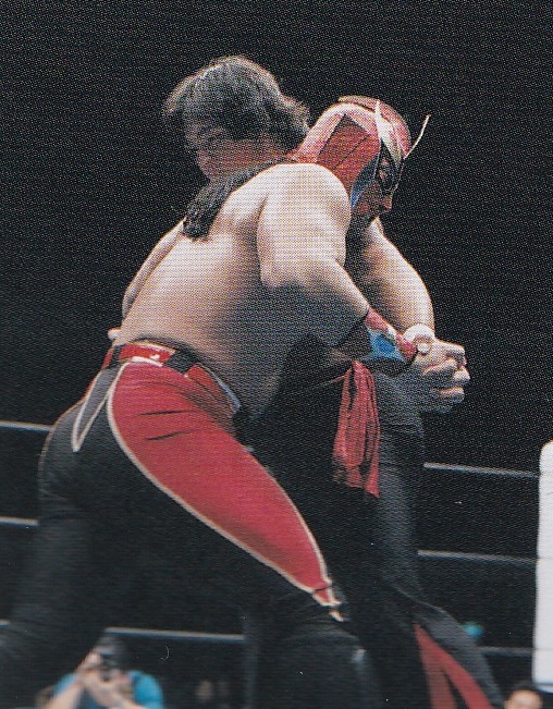 しかし技が解けたところで橋本は腕十字で切り返すと、ライガーはレッグロックで切り返し、橋本は再度腕十字で切り返し、技を解いたところでフロントスープレックス、シュミット流バックブリーカーも、ライガーは掌打からライガーボムを狙うが、橋本が堪えると、突進するライガーにトラースキックで迎撃する。