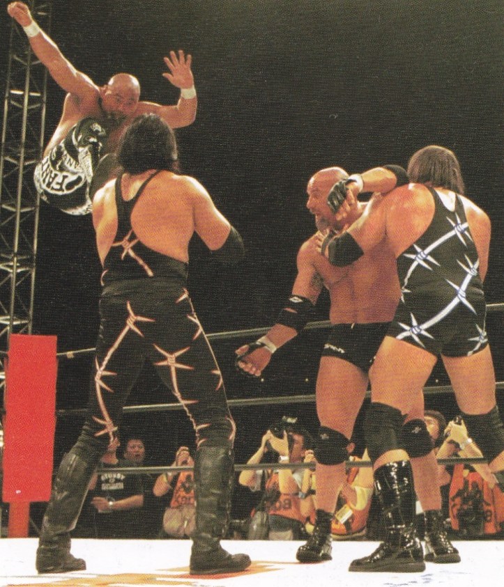 元K-1日本人ファイターで当時PRIDEに参戦していた佐竹雅昭が SATA…yarnとして参戦、DSEのルートで全日本にスポット参戦していたゴールドバーグ、ドスカラスJrとしてPRIDEやDEEPにも参戦していたアルベルト・デル・リオを加えて、全7試合がラインナップ、メインはムタがサップと対戦となったが、闘魂三銃士の盟友である橋本はZERO-ONEの提供試合、蝶野は実況席でのTV解説に留まった。
