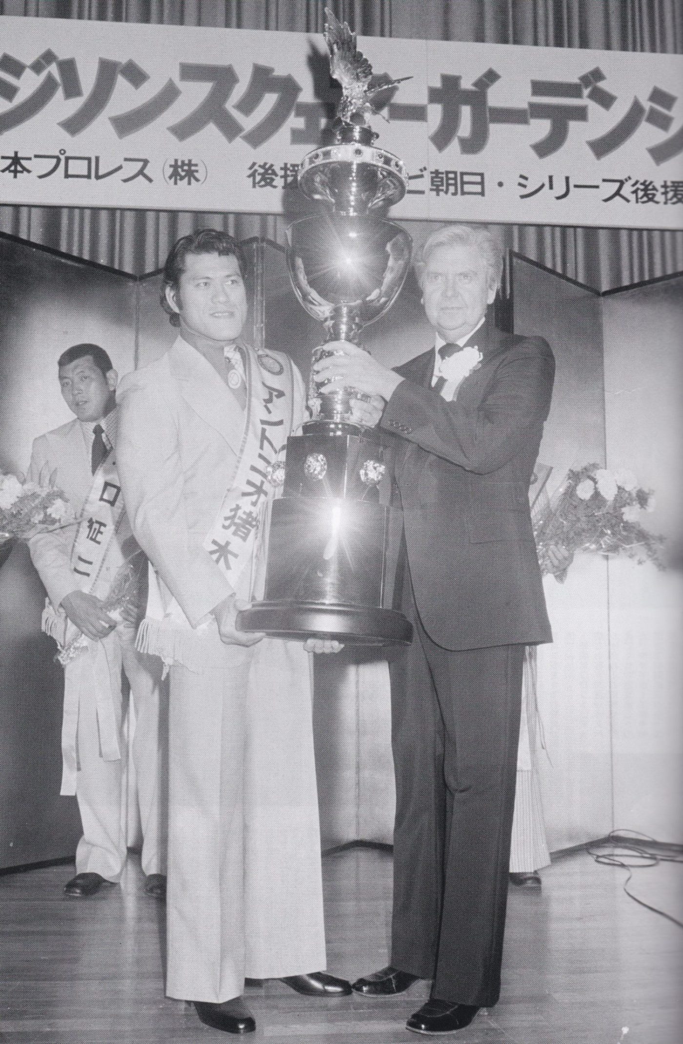 新間氏は「全日本プロレスがMSGシリーズをやっている。おかしいじゃないですか、MSGの名称の使用は新日本が相応しい。いや、全日本以上にMSGの名前を華やかなものにしてみせる!」と訴えると、ビンス・シニアは使用を許可するだけでなく、新しいトロフィーまで用意してくれた。