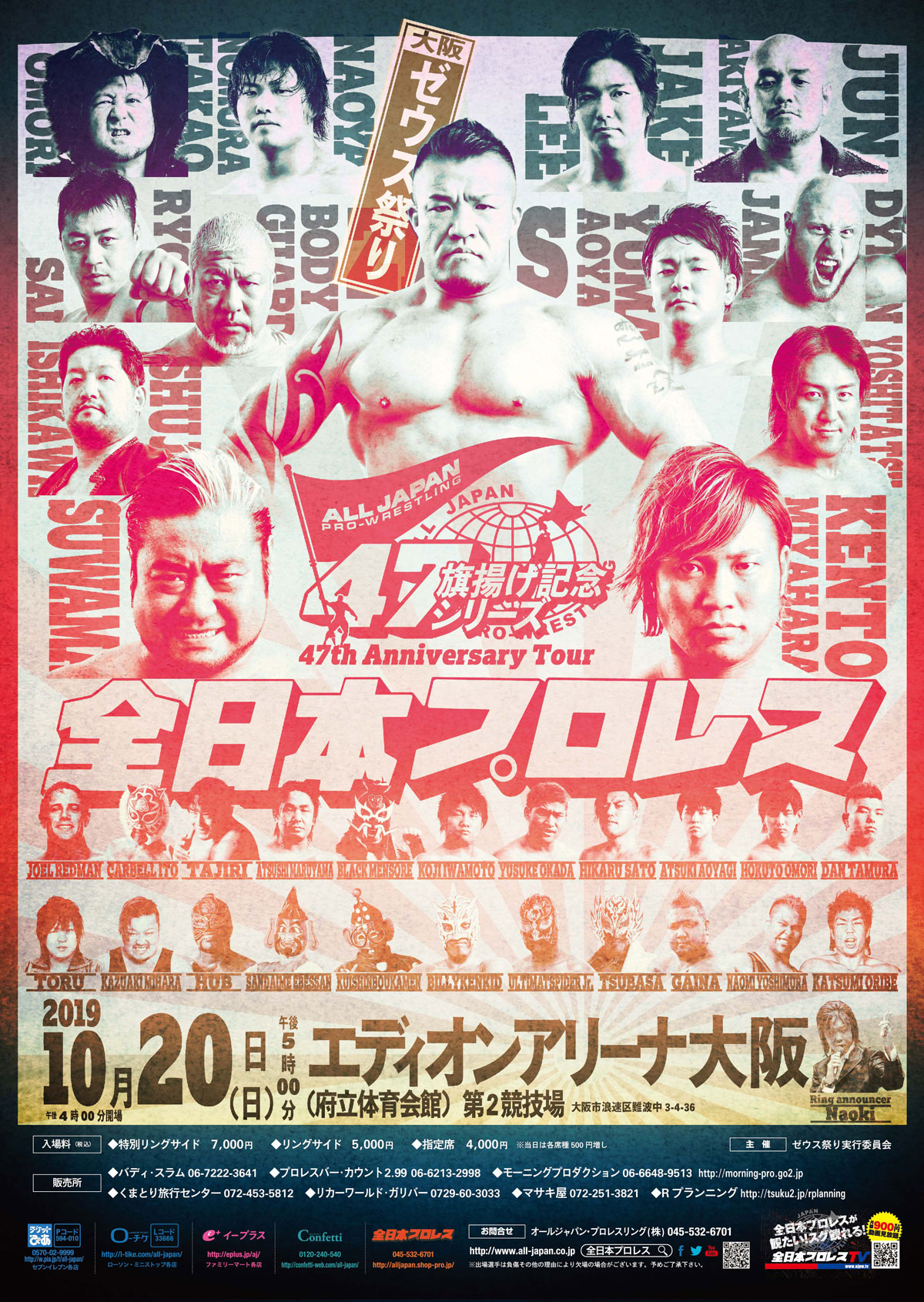 10月20日 全日本プロレス「2019 旗揚げ記念シリーズ ~ゼウス祭り~」エディオンアリーナ大阪第二競技場 956人 超満員札止め