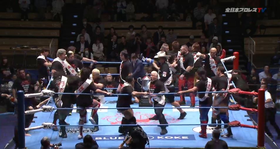 全日本プロレス、年末の風物詩である「世界最強タッグ決定リーグ戦」が開幕。メインは2年ぶりに優勝を目指す諏訪魔&石川の暴走大巨人が宮原&青柳と対戦、10月に世界タッグも失い無冠のままで最強タッグを迎えた暴走大巨人、優勝しなければ解散も辞さない覚悟で望み、また宮原組もジェイクと野村に遅れを取った青柳の最強タッグを通じて底上げをテーマにして望んだ。
