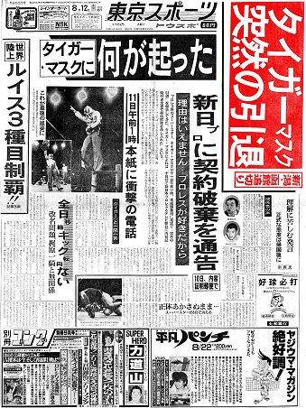 タイガーマスクのマネージャーとなったショウジ・コンチャの行動は大塚直樹氏らにとって想定外だった。翌日にはタイガーマスクは契約解除を求める文書を送付、東京スポーツに電話を入れて引退を表明、コンチャは新日本の事務所を訪れ、契約解除の内容を説明して、タイガーのギャラを搾取しているとして新間寿氏の責任を追及した。