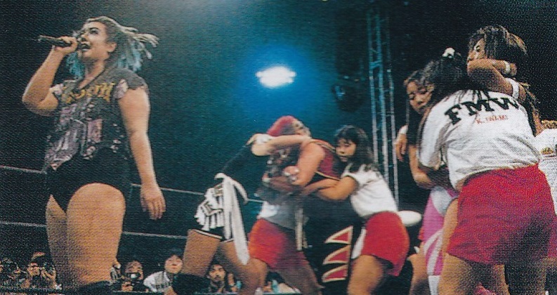 1989年にはFMWも旗揚げ、女子部も創設され、最初こそは生え抜きの選手が主力となっていたものの、全女を退団していた工藤めぐみやコンバット豊田が参戦するようになると、たちまち工藤とコンバットが中心となって女子部の存在も大きくアピールされるようになるも、あくまで大仁田厚を中心にしたことで、FMW女子は団体内でのステータスは低いままだった。