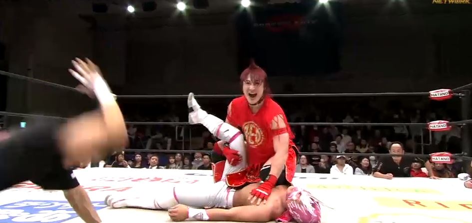 KAZMAvsダイヤに代わり、ダイヤはスワンダイブ雷電ドロップを投下、KAZMAは地獄突きも、ダイヤは619からその場飛びシューティングスタープレスで返し、ファイヤーバードスプラッシュも避けたKAZMAはトラースキックを連発する。