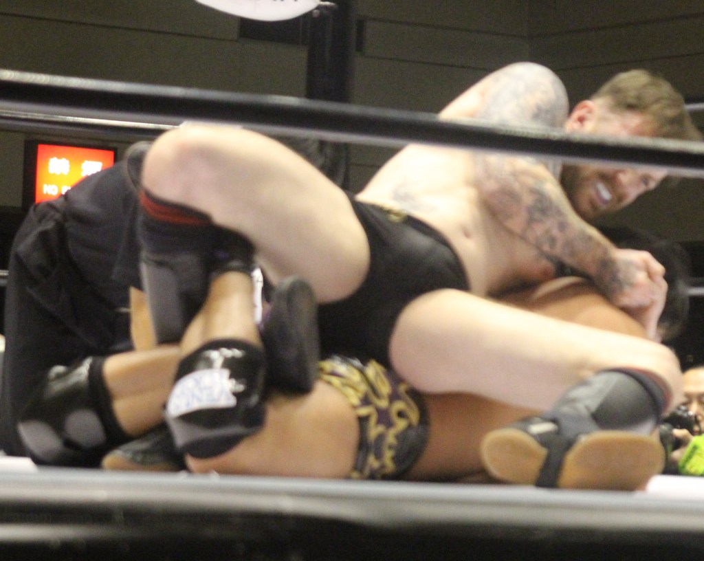 リングに戻ると前屈みになったリッジウェイに原田はダイビングフットスタンプを投下、ノーザンライトスープレックスホールド、しかしターンオーバーニーを逃れたリッジウェイはビックブーツで反撃、原田もジャンピングフォアアームで応戦すれば、リッジウェイもジャンピングニーで応戦する。
