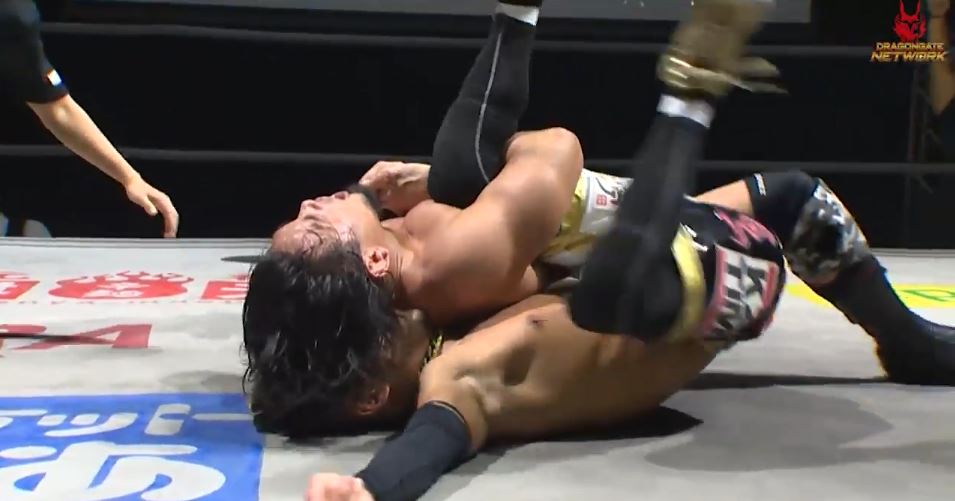 YAMATOはドロップキック、逆水平の連打からコーナーへ振るが、串刺しはKzyがエルボーで迎撃してランニングアッパーカットを浴びせ、読み合いからKzyがB-BOYからノーザンライトスープレックス、串刺しエルボーからBEAT-BOMと猛ラッシュをかける。