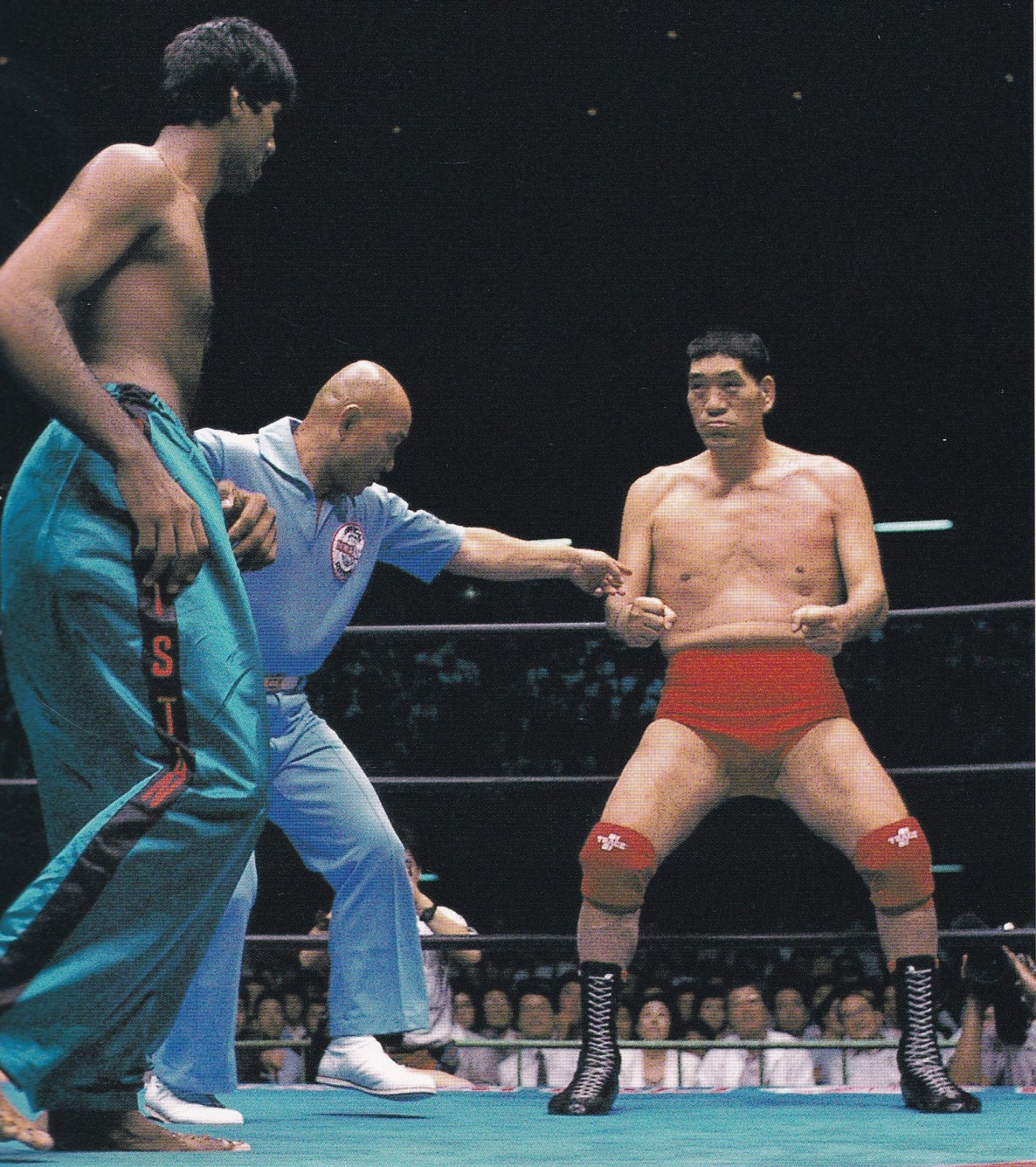 ラジャはキック、チョップを放つが馬場は余裕でガードしたところで、今シリーズ参戦していたタイガー・ジェット・シンとジェイソン・ザ・テリブルが本部席に現れる。ラジャはキックを放っていくがチョップをキャッチした馬場は腕を固めるも、ラジャはロープ逃れる。ラジャは馬場の顎や側頭部にハイキックを浴びせるが、馬場は動じずガードに終始、ミドルキックをキャッチして倒す、またミドルキックをキャッチした際には顔面への張り手を浴びせ、グラウンドを仕掛け たところで1Rが終了する。