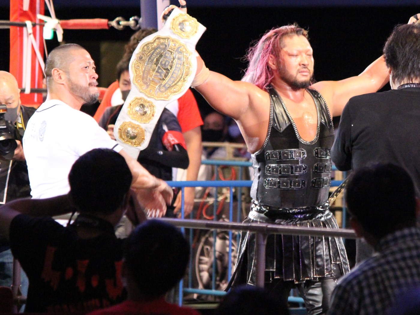 内藤はBUSHIが来たと思い込むが、BUSHIが内藤を殴りつけてワイヤーで首を絞めると、EVILが内藤に急所蹴りからEVILを決め3カウントを奪い王座を奪取した。