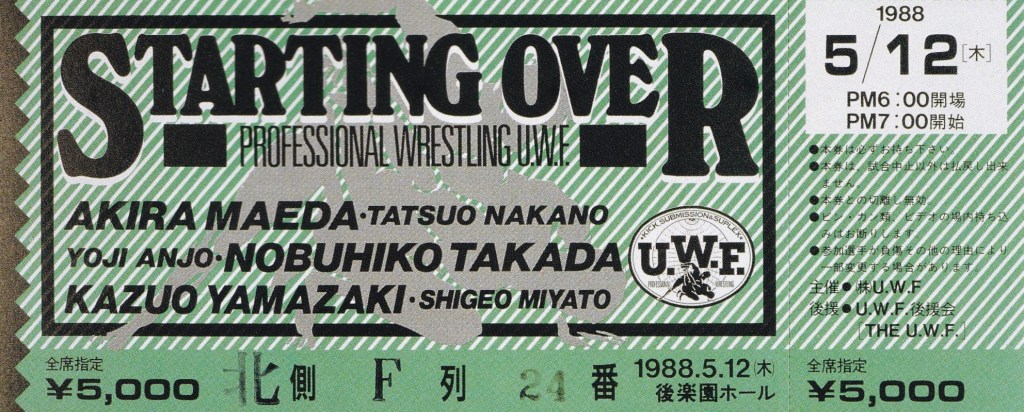 前田vs山崎を中心として3試合しか組めなかった新生UWFの再旗揚げ戦は大成功を収め、順風満帆なスタートを切ったが、UWFの戦略はこれだけでは収まらず、旗揚げ第2戦の札幌中島体育センター大会では、1階席だけでなく2階席も全席同一料金で販売、1階席が完売すると、セットバック席を増席して追加販売する、これも音楽業界ではよくある話で、チケットの売れ行きは好調で更に売れる見込みのあるイベントは、増席されて追加販売する。当時では珍しい音楽業界のライブ手法を取り入れたことで、プロレス界にライブ志向のイベントスタイルを確立させていった。