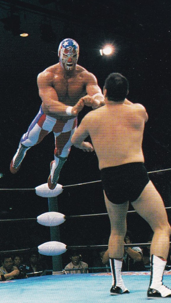 その後パトリオットに変身して1992年「スーパーパワーシリーズ」に全日本プロレスに参戦、この時は初来日とされていたと思うが、下っ端レスラーだったトルーパーの変身だったとは全日本プロレスだけでなく小橋やエースもわからなかったのではないだろうか…6月3日の新潟で小橋と対戦し、小橋がウラカンラナで丸め込んで勝利となったが、これ以降は常連外国人選手となって、全日本プロレスに頻繁に参戦するようになり、この年のジャイアントシリーズでは小橋ともタッグを結成した。