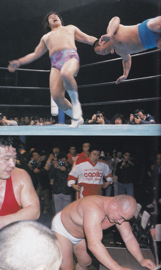 そして国際プロレスにとって期待をかけていた原vs剛の一戦は、剛が国際プロレスを去った理由の一つが原の入団にあったため、その恨みがあったのか剛は原の顔面にビンタを浴びせると、原は意識を飛ばしてしまったことで剛が一方的に痛めつけ、場外戦になると剛はテーブルめがけてアトミックドロップを敢行するも、レフェリーだった小鉄がこれでは試合にならないと判断して試合終了のゴングを鳴らして剛の反則負けと裁定を降し、納得いかない剛は小鉄レフェリーに詰め寄るが、小鉄は「ふざけるな!」と剛にビンタを食らわせ、原を引き立たせずに一方的に叩きのめした剛に怒り、バックステージでもブッカーの草津が国際プロレスから逃げ出した剛に一方的に痛めつけられた原に「あんなビンタでビビりやがって!」とビンタで制裁して、精彩を欠いた原を恫喝していたが、剛にしてみれば草津の眼前で可愛がっていた原を一方的に痛めつけたことは溜飲の下がる思いだったのかもしれない。