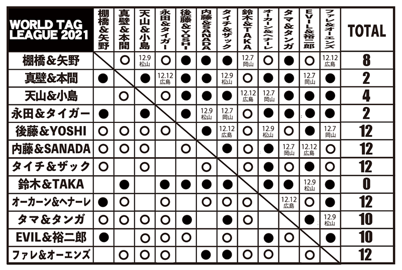 【5勝3敗=10点】〇EVIL 高橋裕二郎(17分10秒 体固め)【6勝2敗=12点】×タイチ ザック・セイバーJr.