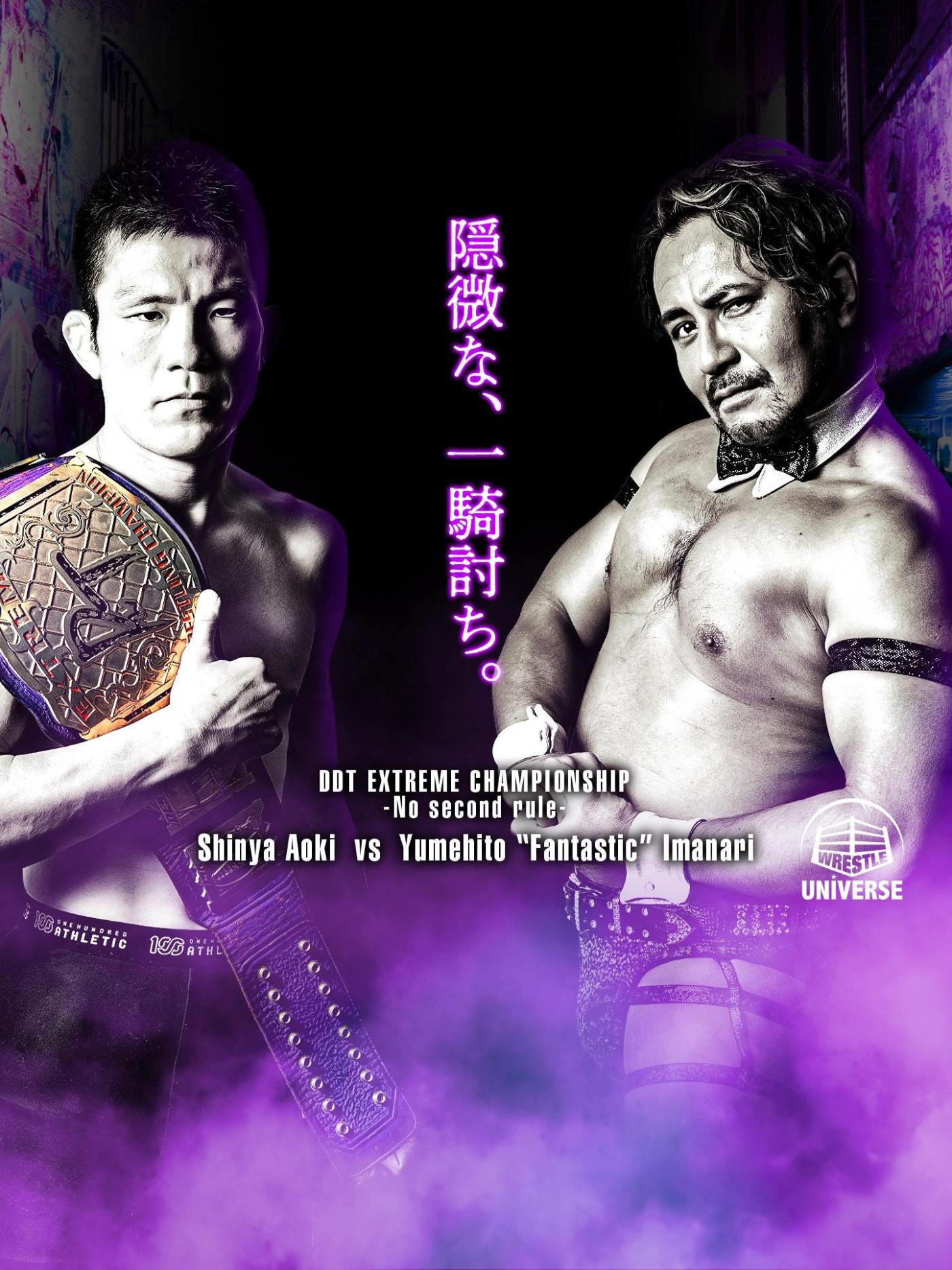 第4試合で行われたDDT EXTREME選手権は、開始から今成がラリアットからバックドロップ、フィッシャーマンズバスター、ドロップキックかエルボーアタックと先手必勝に出るが、スリーパーで捕らえると、切り返した青木はアームロックで捕らえ今成は必死でロープエスケープする。
