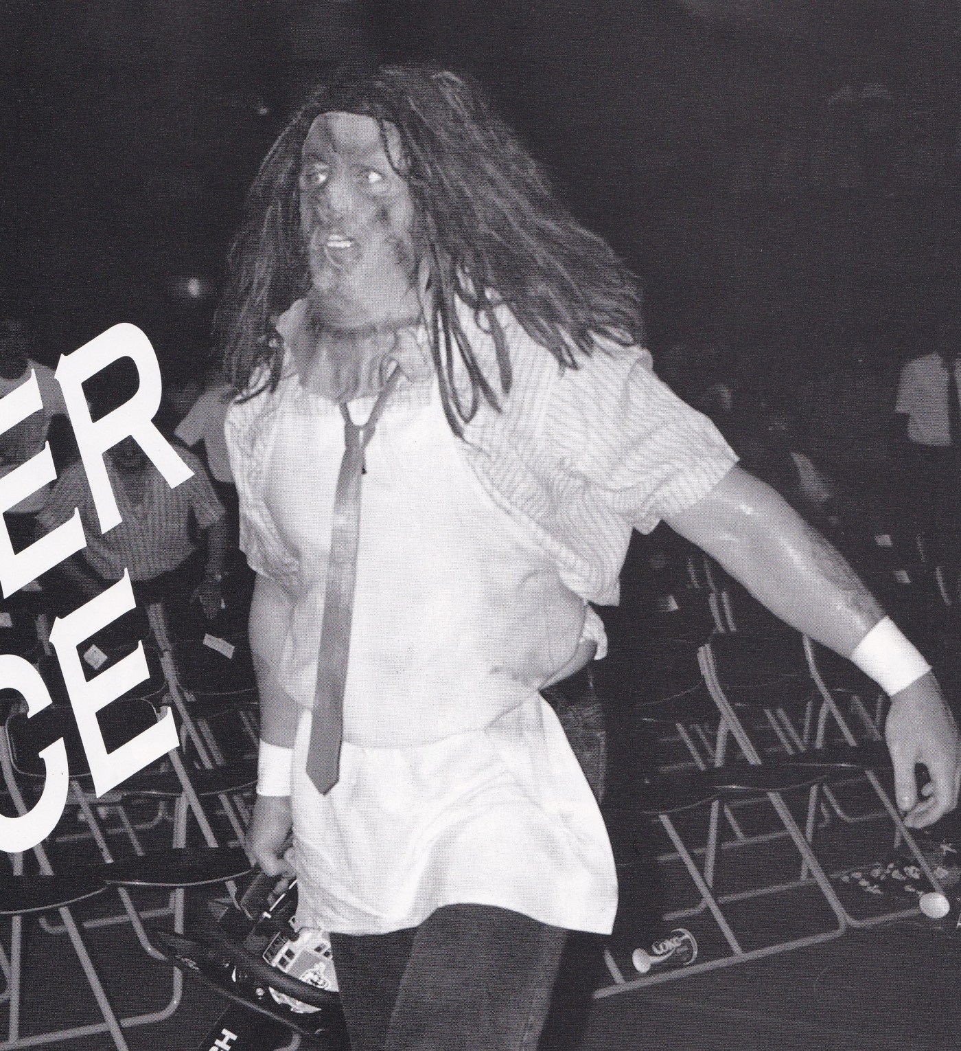 1991年にレザーフェイスに変身して1992年にW☆INGに初参戦、自分は初めてW☆INGを観戦した12月の津市体育館、クラッシュ・ザ・ターミネーター空席が目立つ会場でレザーはチェーンソーを振り回しながら観客席を縦横無尽に暴れまわりながら入場、チェーンソーの怖さもあって、自分も必死で逃げ回ったことを今でも憶えている。この時は松永光弘との釘板デスマッチを控えていたが、大田区体育館で行われた釘板マッチでも松永を釘板へ落として勝利を収め、W☆INGの外国人エース格へと昇りつめた。