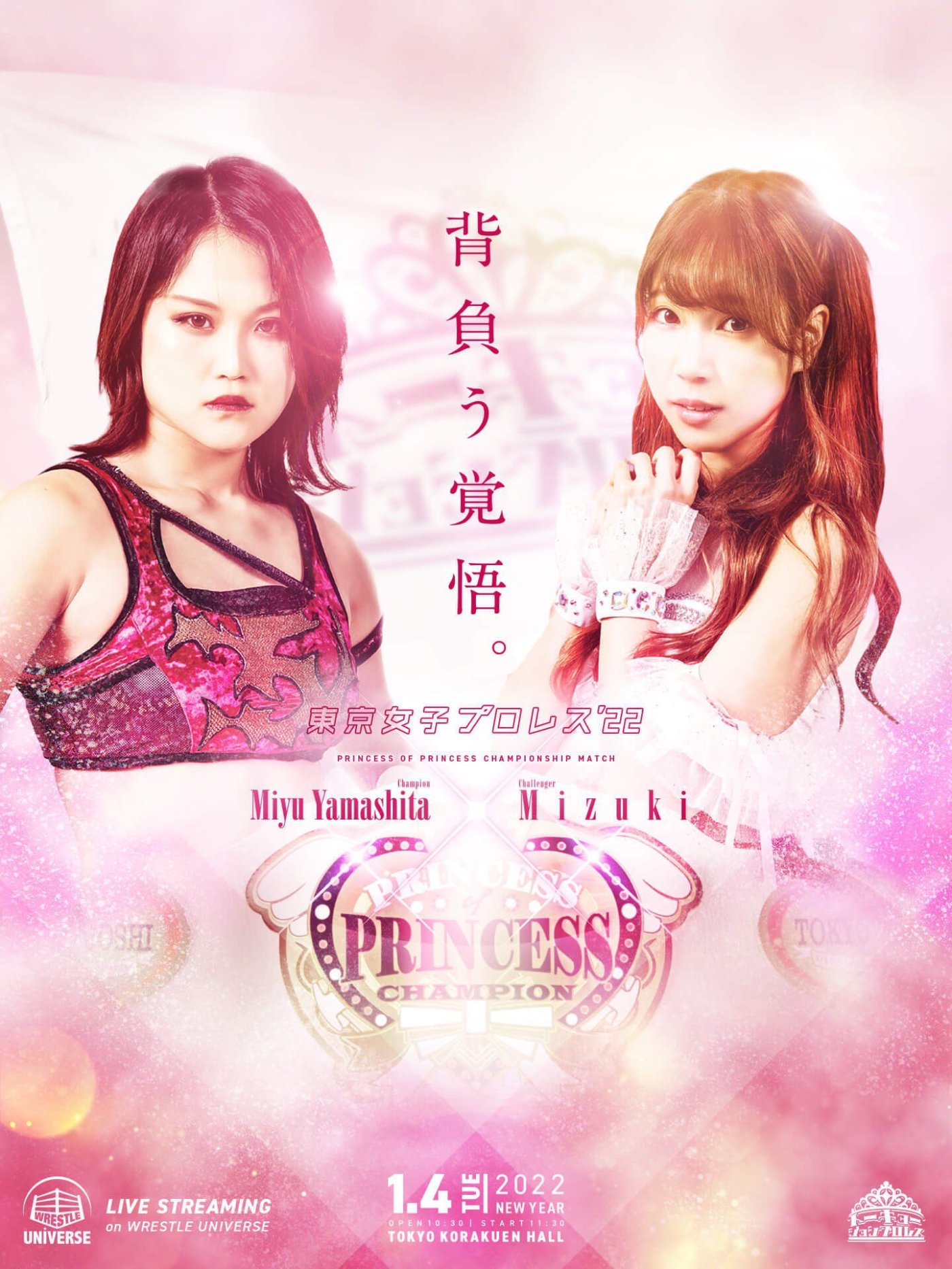 東京女子プロレスの2022年度が今年も1・4後楽園から開幕し、メインではプリンセス選手権が組まれて王者の山下に瑞希が挑戦、瑞希は11・25後楽園ではタッグながら山下から3カウントを奪い、「ウチも東京女子を背負いたい」の想いから今回の選手権が実現となった。