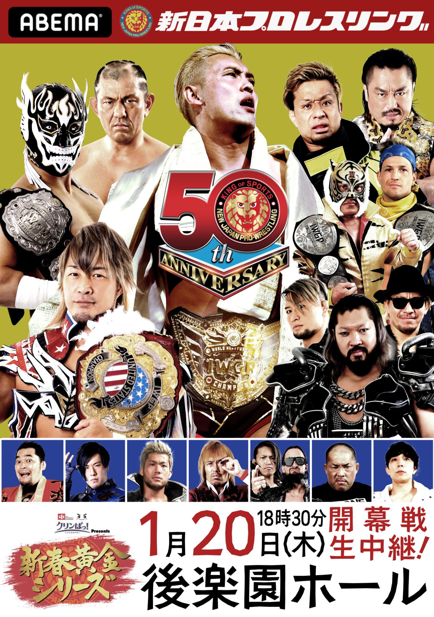 1月4、5日の東京ドーム、8日の横浜アリーナを終えた新日本プロレスの新シリーズ、今年は原点回帰ということで「新春黄金シリーズ」が開幕、メインイベントは20日に行われるIWGP世界ヘビー級選手権、19日に行われるIWGP USヘビー級選手権前哨戦が行われ、世界ヘビー級世界王者のオカダとUS王者の棚橋は、元IWGPヘビー級王者の永田との新旧IWGP王者トリオを結成して、内藤&SANADA&鷹木のLIJトップ3と対戦した。