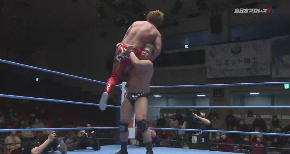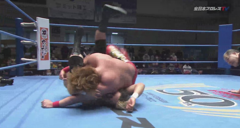 メインで行われる決勝戦は宮原と三冠初挑戦となった本田が対戦、開始となるとロックアップから本田が押し込んで宮原の両頬を叩いてブレークと強気な態度を取り、本田はヘッドロックに対して、宮原はビックブーツから読み合いに持ち込み、バックの奪い合いから宮原がハンマーロックも、本田は切り返してハンマーロック、宮原が押し込んでビンタから突進するが、本田が迎撃して場外戦を仕掛ける。