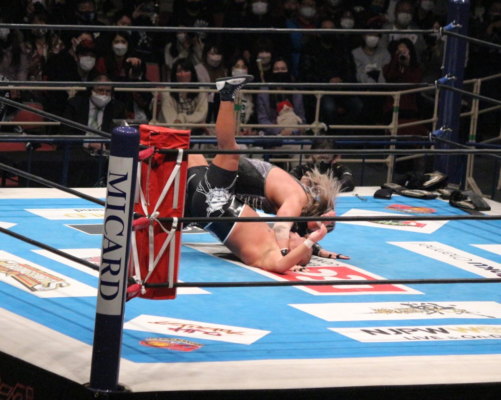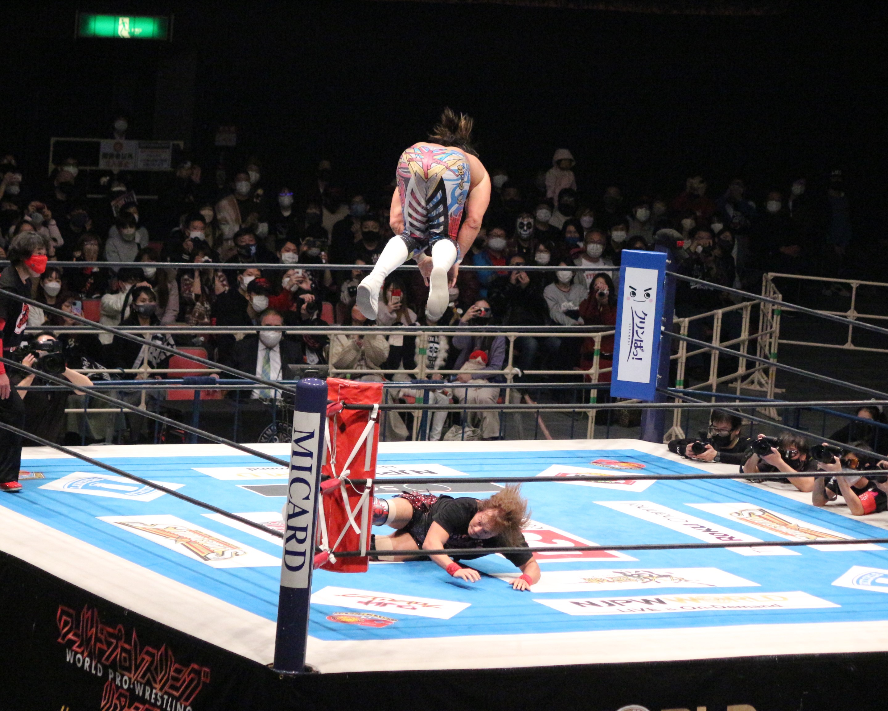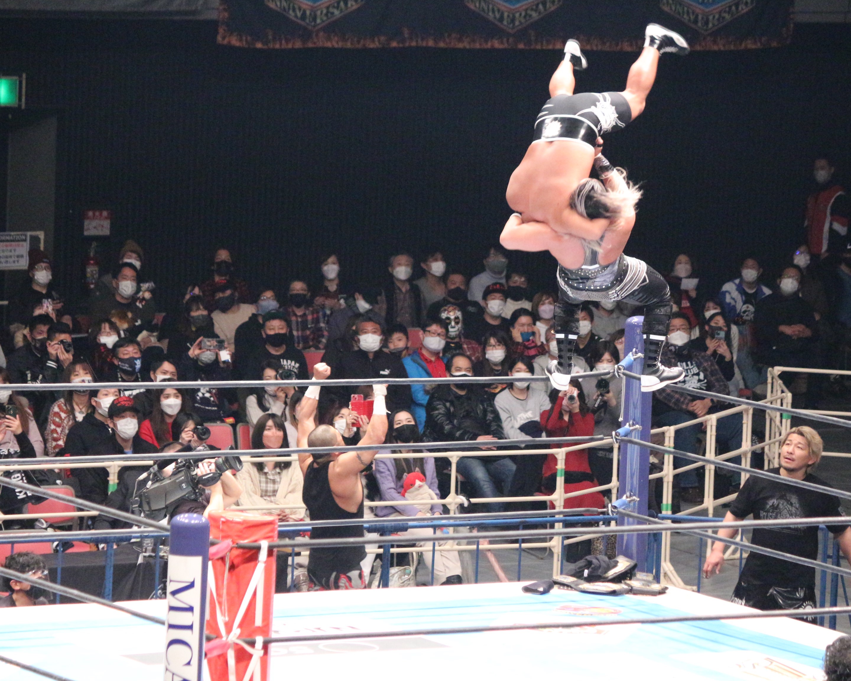 ところが感染症の影響で欠場し今大会から復帰の石森が乱入してタイガーに襲い掛かったため、ファンタズモの反則負けになるも、石森はタイガーのマスクを剥ぎ取ってしまう。