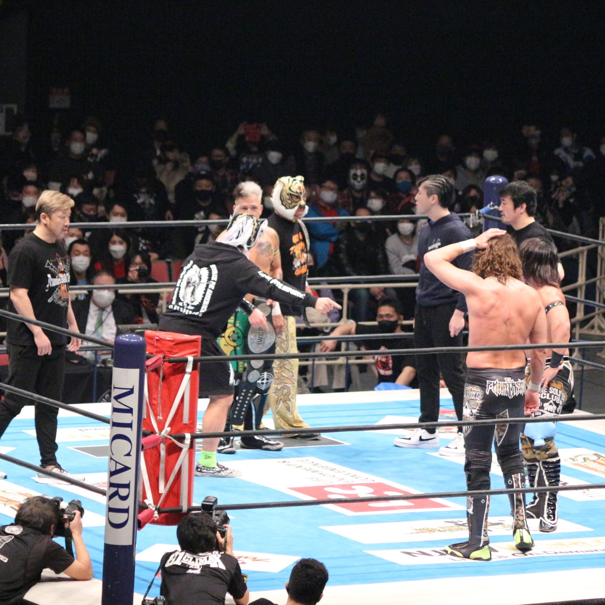 試合後にロビー&タイガーと石森&ファンタズモが睨み合いなっているところで、田口&ワトのシックスorナインが現れてIWGPジュニアタッグ王座に挑戦に割って入れば、デスペラード&金丸も登場して挑戦に割って入る。そこでロビーが4WAYでの選手権を提案したため、カードが変更する可能性が出てきた。
