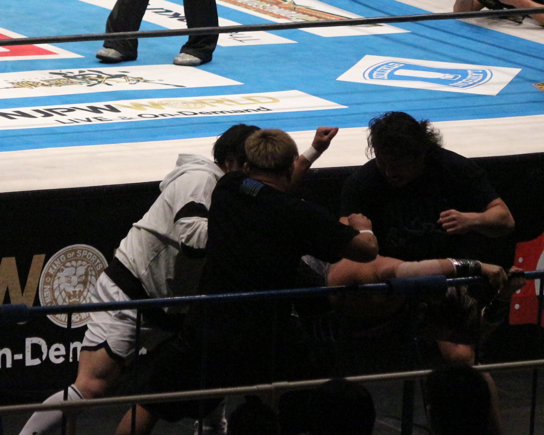 後藤らがダウンしている間に、EVILはHouse of Tortureと共に石井を徹底的に痛めつけるが、石井がHouse of Tortureを蹴散らしてからEVILの指関節をひねり上げ、介入を狙うHouse of Tortureと石井を同士討ちさせるとEVILをバックドロップで投げ、EVILが場外へ逃れても、CHAOSの太鼓の乱れ打ちの餌食にされてしまう。