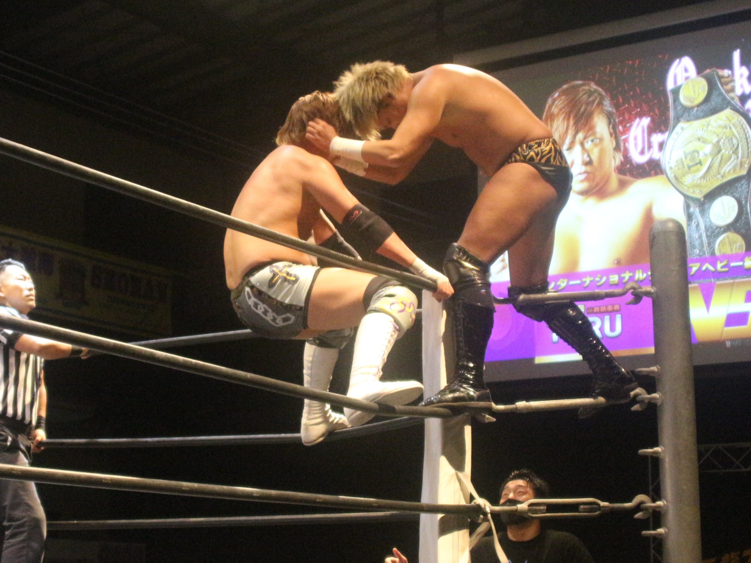渡瀬はトップコーナーへ昇るが、TORUがデットリードライブで落とし、天龍コンポを浴びせるも、渡瀬は大きく構えて前進し、TORUもエルボーを浴びせるも、渡瀬はコーナーまで前進してTORUを押し込みエルボーの連打から顔面ウォッシュ、キャノンボールを浴びせていく。