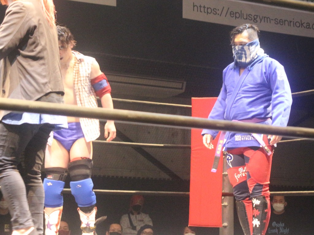 パンクラスレジェンドコンビは再び孤立した矢野を連係で追い詰め、冨宅が上からの掌打を浴びせるも、両腕を捕らえた矢野はエビ固めから、変形ゆりかもめへ移行して、冨宅が溜まらずタップとなって、光留&冨宅が王座を防衛、王者組もワンチャンスを逃さなかったが、下手に船木相手に勝負せず、冨宅に照準を絞ったのが勝因だった。