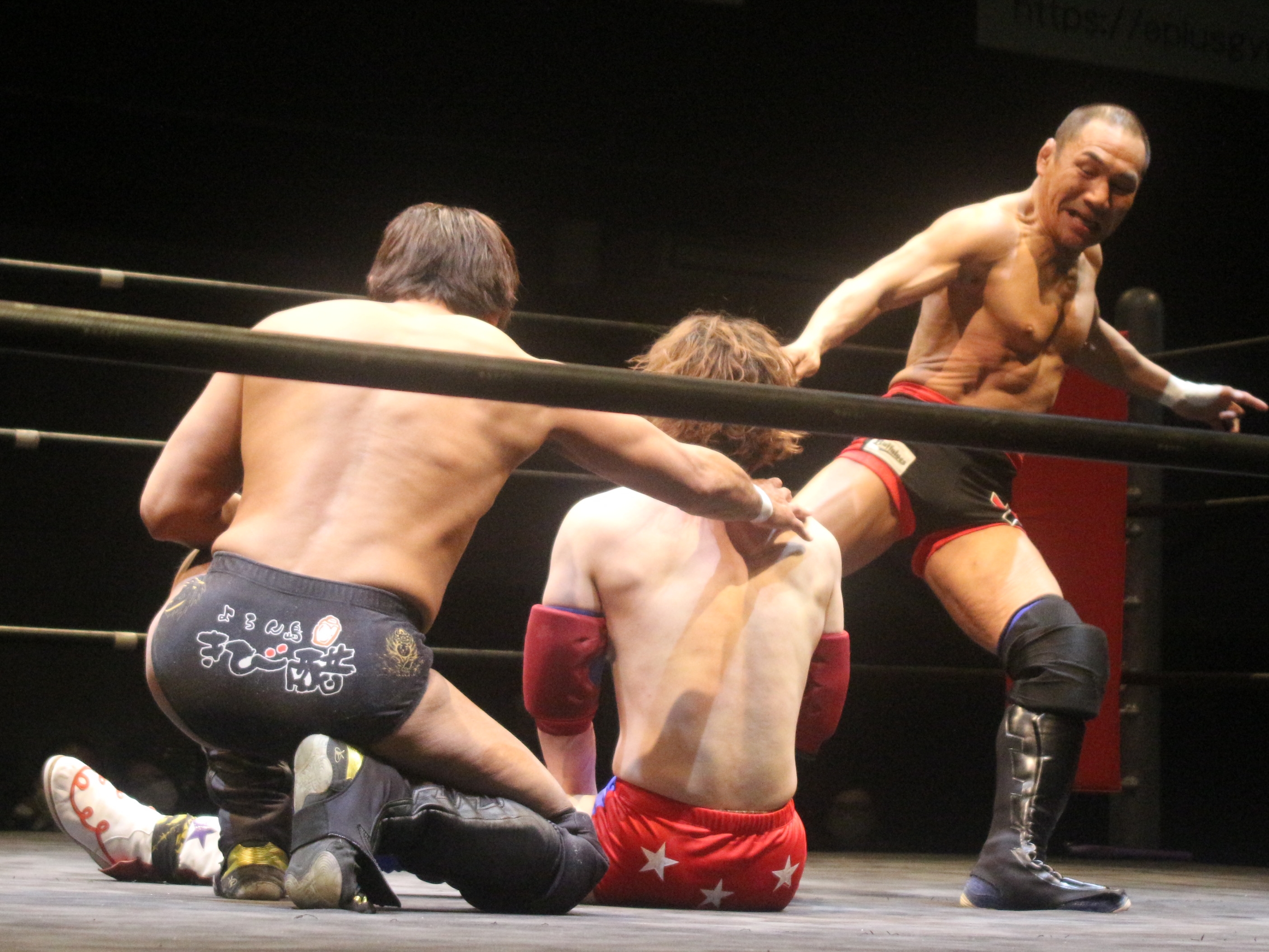 〇ドン・フジイ 入江茂弘 三原一晃(13分14秒 片エビ固め)佐藤耕平 ×河野真幸 HUB
