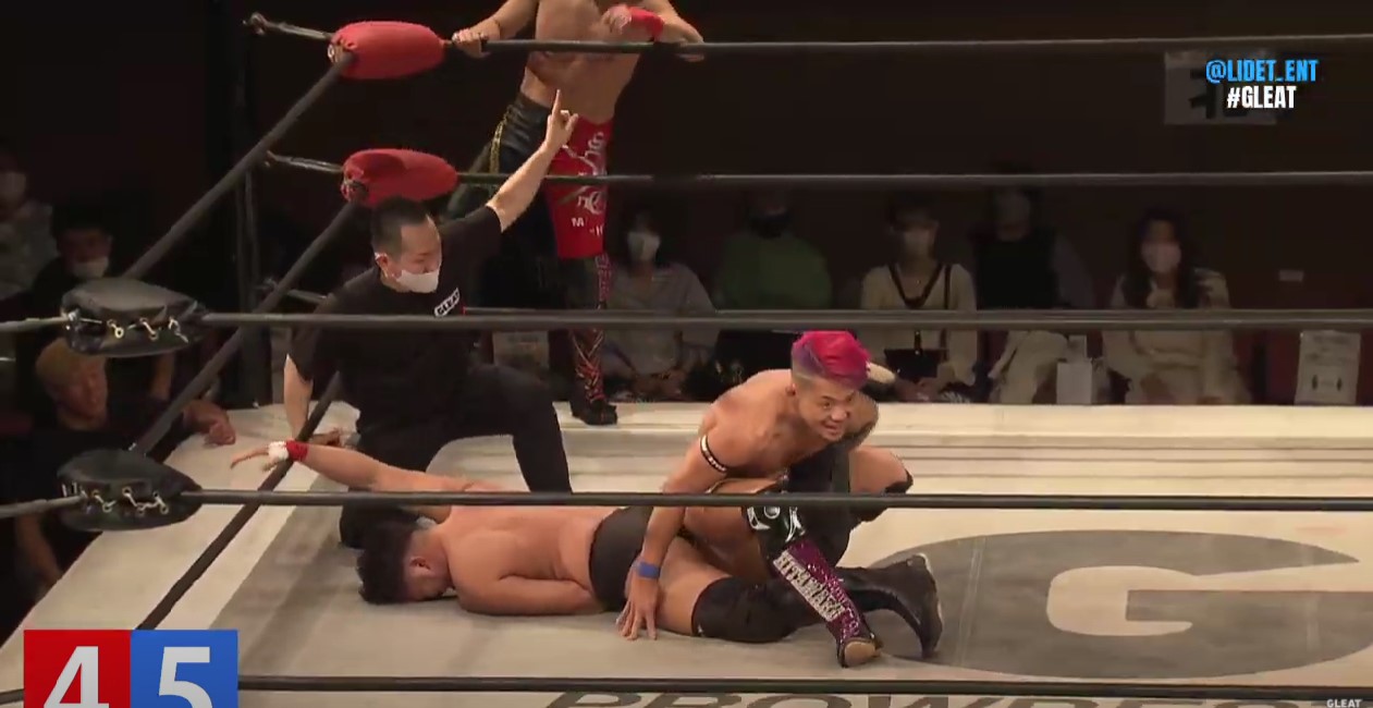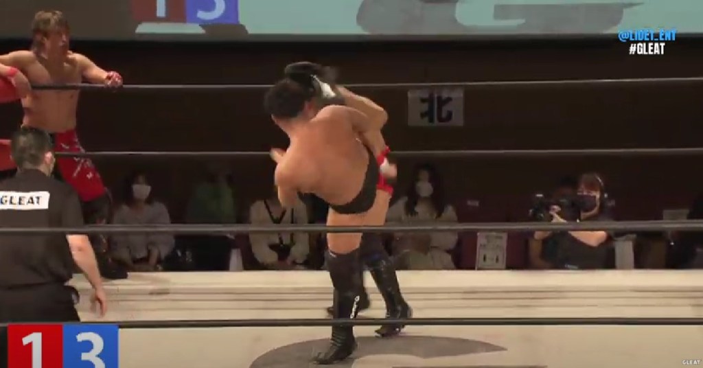 しかし代わった冨宅は伊藤を膝十字からアンクルロックでエスケープを奪って、GLEAT勢の残りポイントが1になると、追い詰められた伊藤が冨宅をジャーマンで投げてダウンを奪い、最後は掌打のラッシュからハイキックで冨宅がダウンで立ち上がれず、GLEAT勢が逆転勝利も佐々木に苦しめられた試合となった。