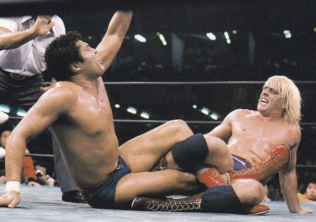 8日の栃木では国際プロレスから移籍したばかりの阿修羅・原とノンタイトルで対戦し、足四の字固めで完勝した翌日の9日の蔵前では鶴田が挑戦。3年前は鶴田が勝っていることから王座奪取に期待がかかり、1本目は鶴田がダブルアームスープレックスからここ一番で出すジャンボミサイルキックを命中させて先制するも、2本目はフレアーがバックドロップから足四の字固めでギブアップを奪いタイスコアに持ち込む、決勝ラウンドの3本目、鶴田が串刺しドロップキックを狙ったが、フレアーが避けたため鶴田はトップロープに股間を痛打してしまったところでフレアーが押さえ込んで3カウントを奪い3年前のリベンジを果たして王座を防衛し日本を離れた。