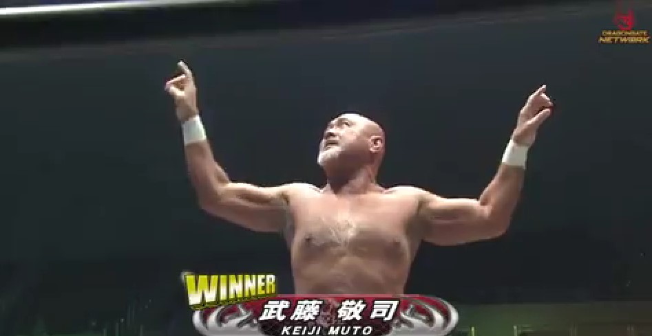 武藤は背を向けるが、市川はカンチョーからドラゴンスクリューは自身が顔面をマットに痛打して失敗すると、武藤がドラゴンスクリューからシャイニングウィザードで3カウントを奪い勝利を収める。