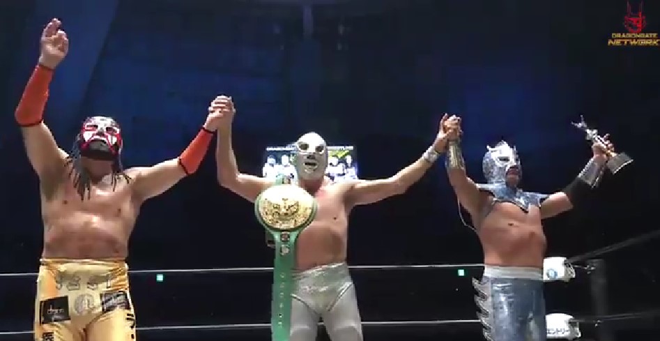 【第82代王者組】望月マサアキ 〇望月ススム 望月ジュニア(15分47秒 ワールドライナー)【挑戦者組】YAMATO ×ドラゴン・キッド Ben-K