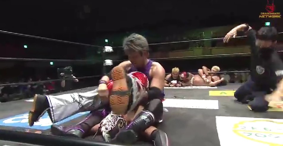 勢いに乗るBen-Kが望月親子をまとめてスピアーから、YAMATOがスリーパーでジュニアを追い詰めるも、ギャラリアを狙うと、ジュニアが切り返したところでマサアキが真最強ハイキック、YAMATOはgo to Hospital1で応戦も、ススムがYAMATOとBen-Kにジャンボの勝ち!そこでキッドがススムにウルトラウラカンラナで強襲する。