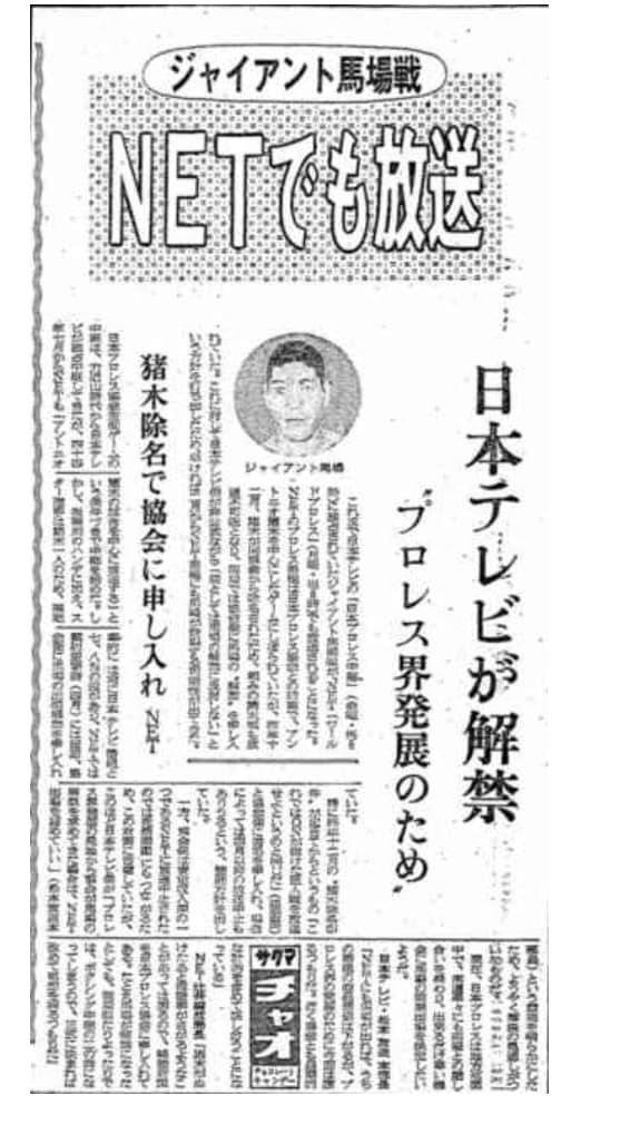 日本テレビ幹部の発言はあくまで一人の発言であり日本テレビの総意ではなく、しばらくして撤回されたが、日本プロレス側はこの発言を大いに利用して、芳の里は取締役だった遠藤幸吉と一緒に「馬場ちゃん、4月からNETにも出てもらうことになると思う。ここはウチの台所事情を察して協力してもらいたい」と馬場に申し入れたが、日本テレビ側も猪木が抜けたことでNETは馬場を出すことを要求してくるだろうと想定していたことから、馬場本人に「もし馬場ちゃんがNETの画面に出るようなことになったら、ウチは間違いなくプロレス中継から手を引くよ」と再三警告を受けていた。