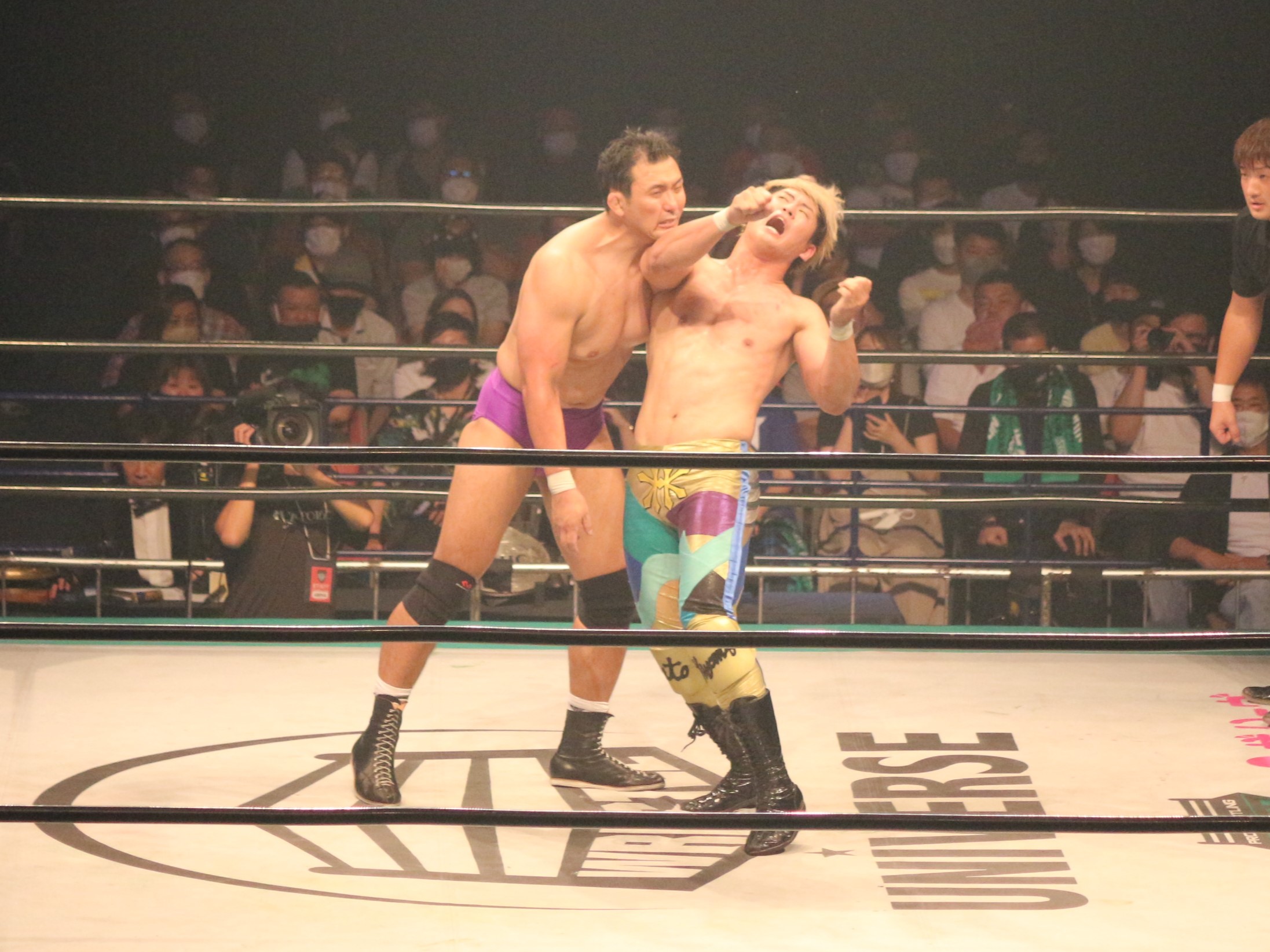内容的には清宮がどこでギアチェンジしてくるかがポイントで、鈴木も清宮のギアチェンジにヤマを張って武藤殺法の封殺に出たが、清宮がもう1段ギアチェンジをして自分の技であるタイガースープレックスホールド、ショートレンジシャイニングウィザードで一気に勝負に出た。直前会見では鈴木が清宮を「武藤敬司にとらわれてる」と言い放ったが、最後は自分の技で勝負に出たことで、武藤に囚われているいないというものを見せつけた。