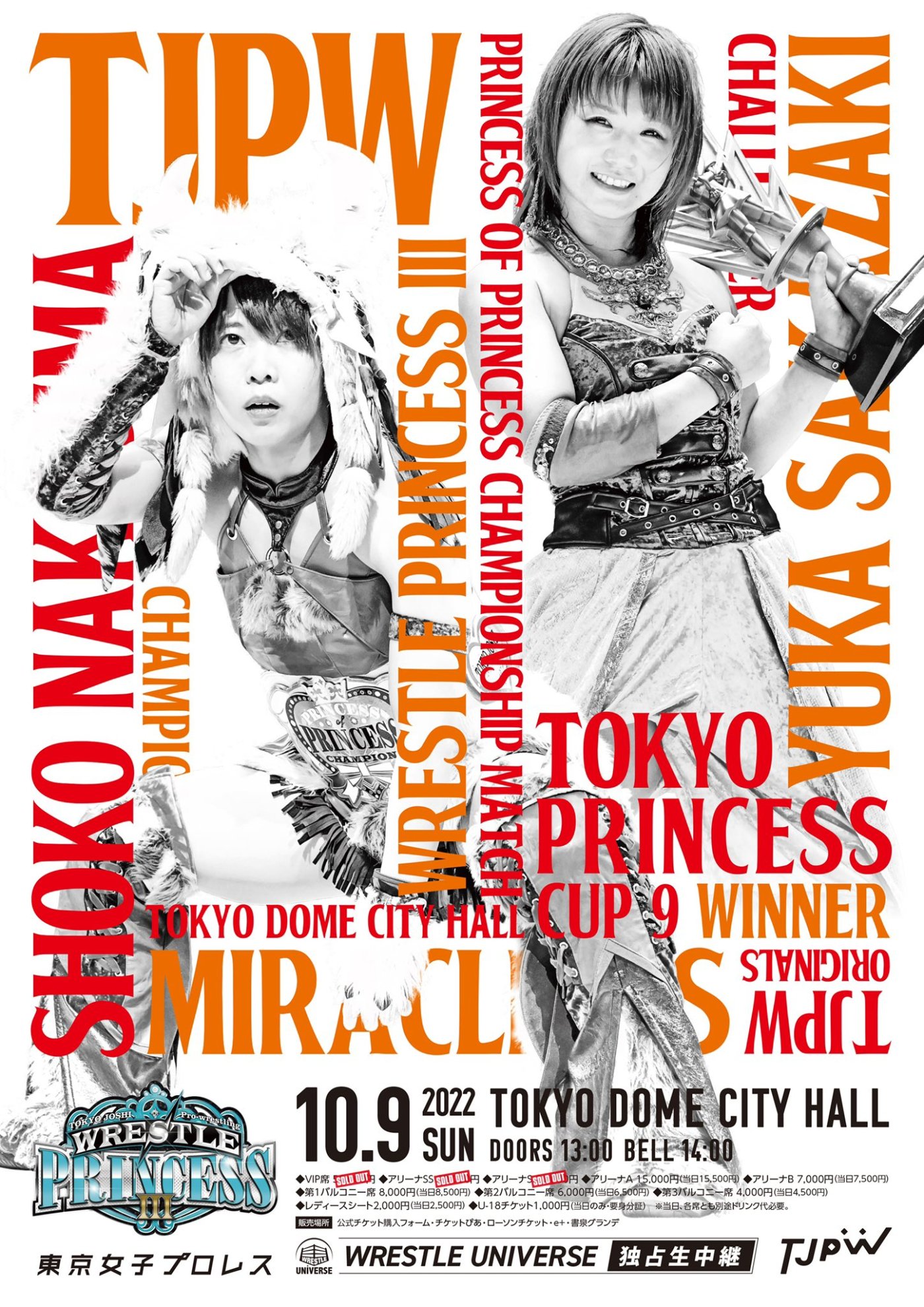 東京女子プロレスの東京でのビックマッチ「WRESTLE PRINCESS Ⅲ」がTDCホールで開催され、メインはプリンセス王者の中島にプリンセスカップを優勝した坂崎が挑戦、両者は6月12日の「CyberFightFestival」で対戦しており、中島がダイビングセントーンで坂崎から3カウントを奪い王座を防衛したが、坂崎はプリンセスカップを制したことで再び中島に挑戦することになった。