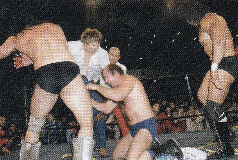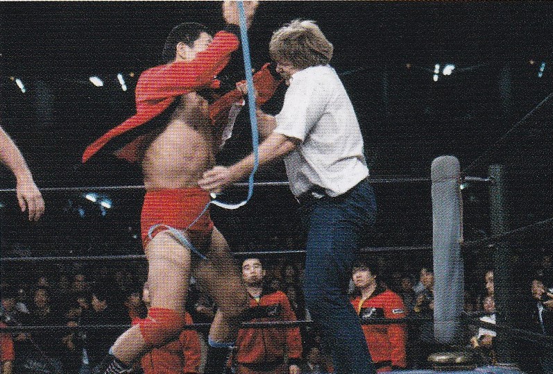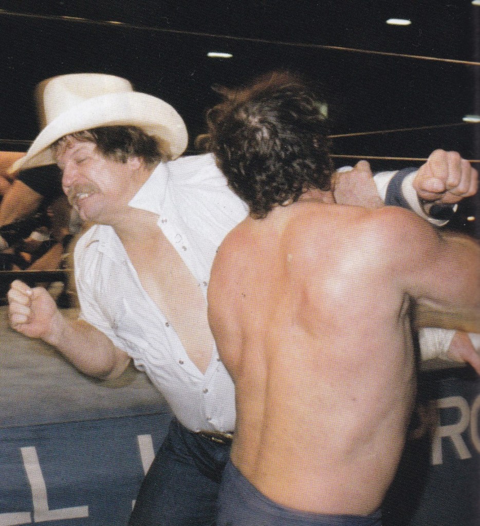 倉持アナ「ブルーザー・ブロディとジミー・スヌーカが入場して参りました。おっと、誰でしょうか?その後ろにはウエスタン・ハットを被った大型の男がいますが……。あ、スタン・ハンセンだ!」