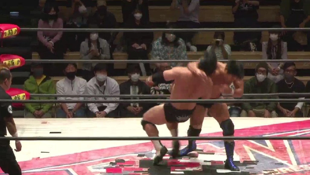 【1勝=2点】入江茂弘 〇青木優也(12分35秒 片エビ固め)【3勝2敗1分₌7点】×神谷英慶 橋本大地