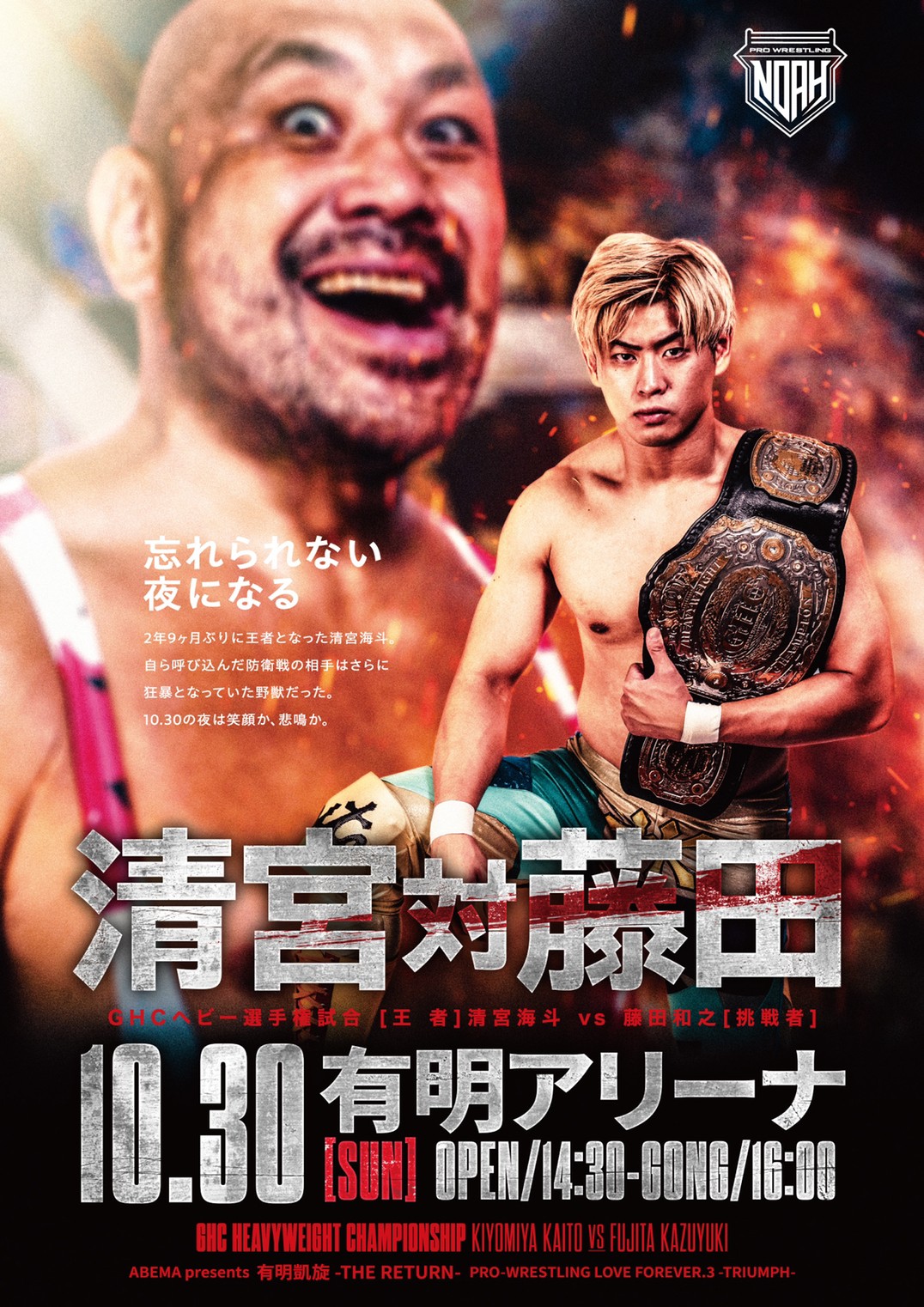 その初のビックマッチのメインはGHCヘビー級選手権試合として王者の清宮に野獣・藤田が挑戦、清宮はこの決戦にあたり新テーマ曲で登場した。