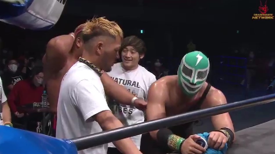 DRAGON GATE大阪大会の第7試合ではブレイブゲート選手権、王者のH・Y・Oにキッドが挑戦、10・15神戸サンボー大会でジェイソンを破って王座を防衛したH・Y・Oにブレイブ王座で一時代を築いたキッドが挑戦を表明、H・Y・Oにとって憧れの存在ということで挑戦を受諾し今回の選手権となった。