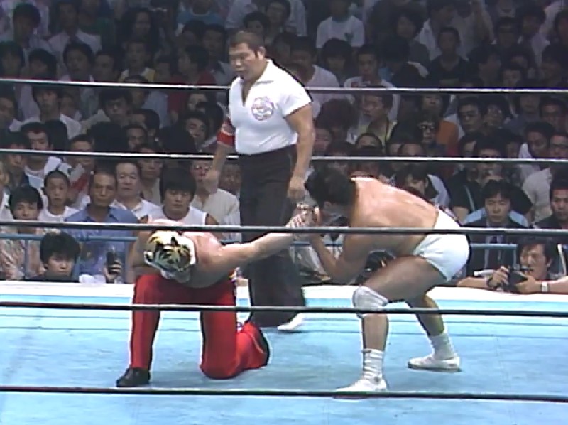 初代タイガーはアームロック、ストンピングからサマーソルトドロップ、コブラツイストで捕らえるが、腰投げで逃れた寺西はビル・ロビンソン譲りのワンハンドバックブリーカー、パイルドライバーと大技を繰り出し、トーキックから首投げ、足をかけてのダブルアームロックで捕らえ、これまで声援を送らなかった館内も寺西の善戦ぶりに”勇”コールが巻き起こる。