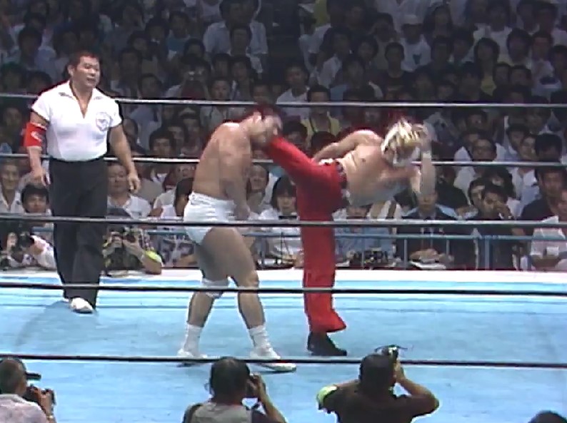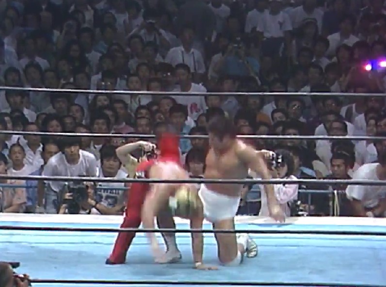 トンボを切って逃れた初代タイガーはヘッドロックからショルダータックル、寺西のショルダースルーを着地してからミドルキック、寺西の後頭部へスピンキックを浴びせ、寺西は思わず崩れてしまい、初代タイガーはヘッドシザースで捕らえて絞めあげるとニードロップを連発、ボディースラムからエルボードロップ、再びヘッドシザースで捕らえるが、ショルダースルーを狙うと、着地した寺西は驚いた初代タイガーにドロップキック、ボディースラムからスリーパーで捕らえるが、タイガーは蹴りで逃れてローリングソバットで返す。